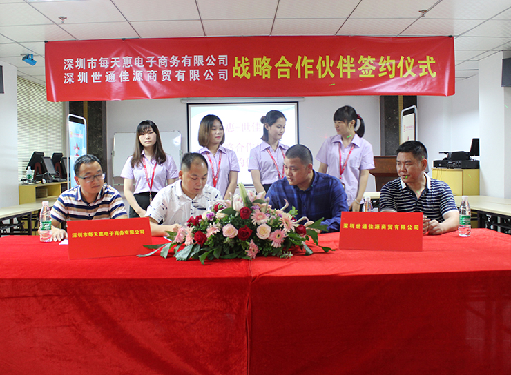 2017年10月14日,深圳市每天惠电子商务有限公司、深圳世通佳源商贸有限公司战略合作签约仪式在广东维客佳便利店有限公司总部隆重举行。深圳市每天惠电子商务有限公司全国商品总监督刘阳先生、深圳世通佳源商贸有限公司董事长邓文清先生等领导亲临签约现场,共同见证并进行了签约仪式。